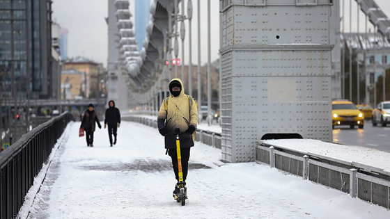 Первый снег в Москве выпал в ночь на 27 октября и продолжал идти в течение дня. Температура опускалась ниже нуля, на дорогах появился гололед. Многие водители еще не поставили зимнюю резину, курьеры по привычке преодолевали стихию на велосипедах, сервисы аренды самокатов приостановили работу.