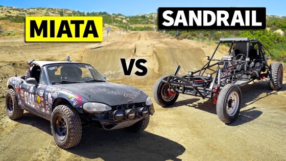Американская команда Hoonigan, которая помимо подготовки автомобилей к гонкам ведёт и собственный блог, представила новый эпизод своего проекта This vs. That. В новой гонке по прямой блогеры продолжили тему заездов по бездорожью с участием сверхмодернизированных вездеходов. На сей раз в соперники хардкорному вездеходному багги K-Swapped Sandrail была выбрана... культовая Mazda MX-5, она же Miata в США. И родстер тоже изрядно доработан для пересечённой местности.
