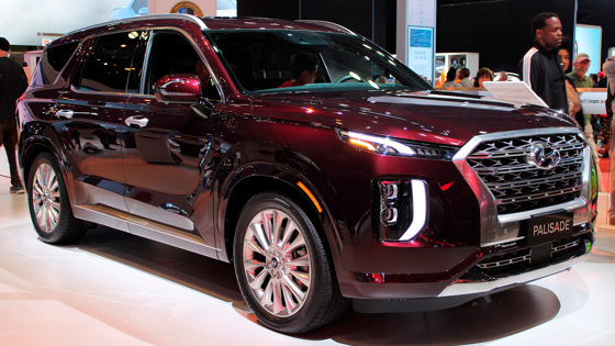 На четвертом месте обосновался Hyundai Palisade – крупный кроссовер, который можно назвать даже внедорожником. Его длина составляет 4,98 метра, а ширина – 1,98. Привод - на все колеса, двигатели - как бензиновые, так и дизельные, от 2,2 до 3,8 литра. Огромный кузов позволяет разместить в салоне восемь пассажиров благодаря третьему ряду сидений. При необходимости второй и третий ряды складывается электроприводом и образуют большой ровный пол.