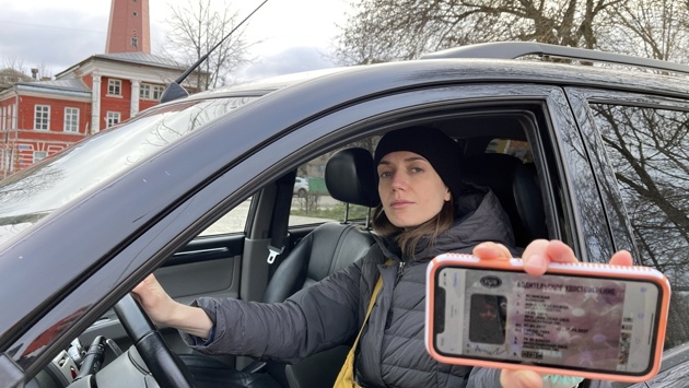 Планшет снимает данные кода, и на экране появляются реальные права. То есть водительское удостоверение со всеми данными.