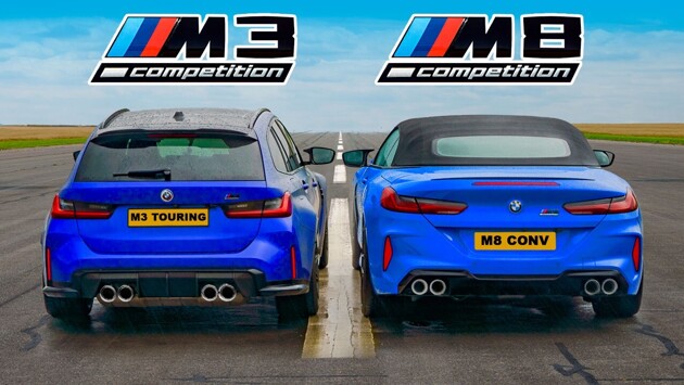 Авторы YouTube-канала Carwow устроили очередную гонку по прямой, которую превратили во внутрибрендовую дуэль двух концепций. Соперником первого в истории M3 серийного универсала BMW M3 Touring выбрали менее практичный, но более стильный кабриолет BMW M8 Competition Convertible. И во время гонки выяснилось, что ради скорости вовсе не обязательно жертвовать вместительным багажником — универсал если и медленнее кабриолета, то совсем чуть-чуть.