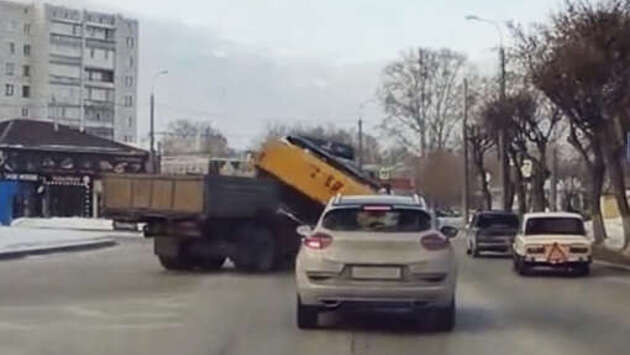 В Тюмени на перекрестке с круговым движением компрессор выпал из кузова "КамАЗа" и врезался в проезжающий автомобиль "ВАЗ-2106", сообщает Telegram-канал "Тюмень новости (Авто и не только)". Авария произошла на перекрестке с круговым движением недалеко от остановки "Дом Обороны". На видеозаписи видно, что бортовой "КамАЗ" с манипулятором, в кузове которого установлен компрессор, съезжал с круга, чтобы повернуть направо. При этом незакрепленный груз сместился под действием центробежной силы, проломил борт и упал на проезжую часть, по которой в этот момент двигались два автомобиля Lada. Водитель бежевого ВАЗ-2106 без номеров и с привязанным к кузову знаком аварийной остановки сместился вправо, но столкновения с упавшим компрессоом избежать не удалось. Несмотря на это, легковые машины продолжили движение.