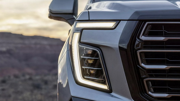 Главная примета рестайлинга — G-образные фары уменьшенного размера. Также у внедорожников изменится решётка радиатора: например, версия Denali откажется от мелких сот в пользу крупных прямоугольных звеньев. Противотуманки станут компактнее и поменяют форму, по низу бампера добавится лидар, а ещё неуловимо изменится форма заднего бампера.
