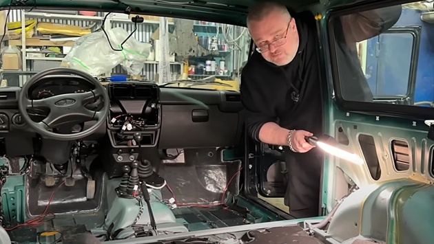 По словам Свиридова, кузов сварен плюс-минус так же, как на китайских авто, с той лишь разницей, что швы не укрыты герметиком. На полу присутствует имитация шумоизоляции, а дверная панель заклеена скотчем и черной клеенкой, функционал которой, видимо, в отведении капель со стекла от попадания в полости. Ведущий объяснил, почему Niva Legend необратимо гниет изнутри: на арках стекол в силу конструкции кузова образуется конденсат.