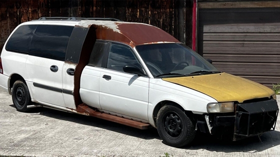 Но для чего Suzuki разрезали пополам и приварили к нему половину кузова минивэна? Это нужно было для того, чтобы разместить там киносъёмочную бригаду вместе с камерами и осветительным оборудованием: в крошечный Suzuki Esteem всё это просто не влезло бы.