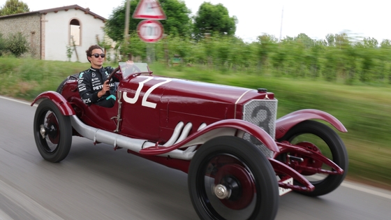 За руль машины сел британский гонщик Формулы-1 Джордж Рассел, который на исторической машине приехал из Фаэнцы в древнюю деревню Бризигелла, где пилоту заводской команды Mercedes-AMG в чемпионате мира вручили премию имени Лоренцо Бандини, которую присуждают участникам Формулы-1.