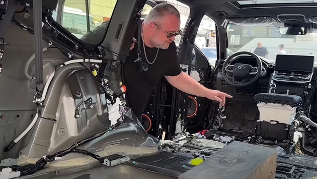 Новый LC 300 был полностью разобран "Клубным сервисом" ещё в октябре 2021 года: тогда даже сняли кузов с рамы, чтобы показать все отличия от "двухсотого". Теперь внимание было сосредоточено в основном на салоне внедорожника, точнее, на том, что клиент не видит, когда покупает автомобиль.