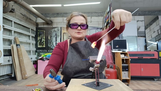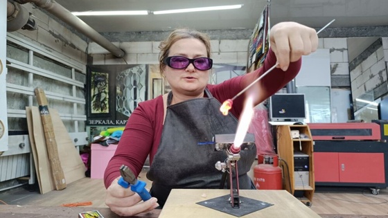 Марина показала, как кусочек стекла под огнем газовой горелки превращается в бусинку. Стекло плавится и накручивается на стальной пруток. Смешивая стекла разных цветов, можно получить уникальный рисунок. На мастер-классах от таких превращений у тюменцев загораются глаза.
