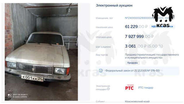 В Красноярском крае администрация города Дивногорска получила 8 млн рублей за списанную Volga. Об этом сообщает Telegram-канал "Автопоток". "Почему так много? Разгадка проста: машину продавали вместе с "красивым" номером к001кк24",- говорится в публикации. Примечательно, что изначально автомобиль хотели продать за 61 тыс. рублей. До этого автомобильная экосистема Pango Cars запустила на российском рынке аукцион по продаже автомобилей с пробегом. Так, теперь дилер из, например, Краснодара, где стоимость на авто выше рыночной в России, может покупать авто из Москвы по наиболее выгодной цене. Или, к примеру, можно будет выкупить не самую востребованную модель из Казани и отправить в Челябинск, где на нее будет высокий спрос.