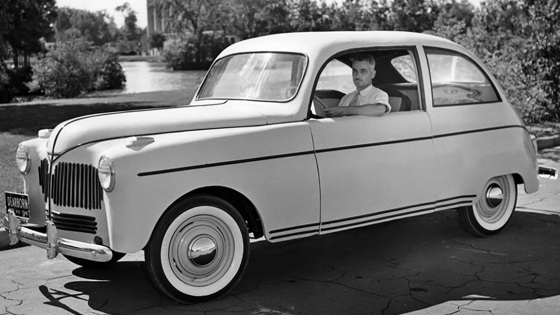 Реализация замысла потребовала времени — если точнее, целых семи лет. 13 августа 1941-го, на ежегодном фестивале Dearborn Days для энтузиастов концерна Ford, дебютирует неказистая, на первый взгляд, машинка: лаконичные формы, компактный двухдверный кузов, минимум декора. Но присмотритесь повнимательнее — это же настоящий «понтонный» дизайн без выступающих крыльев, революционный для той эпохи!