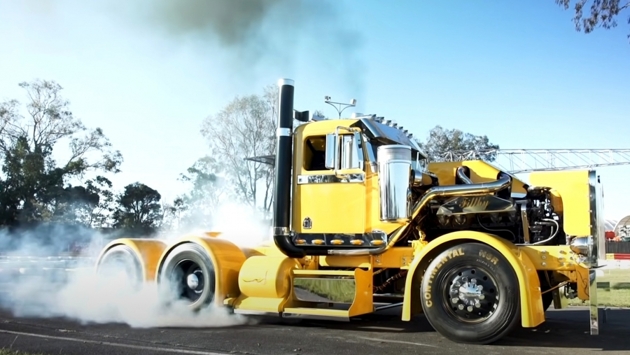 Посмотрите на тягач Peterbilt с двигателем мощностью 2300 л.с., созданный для бернаута