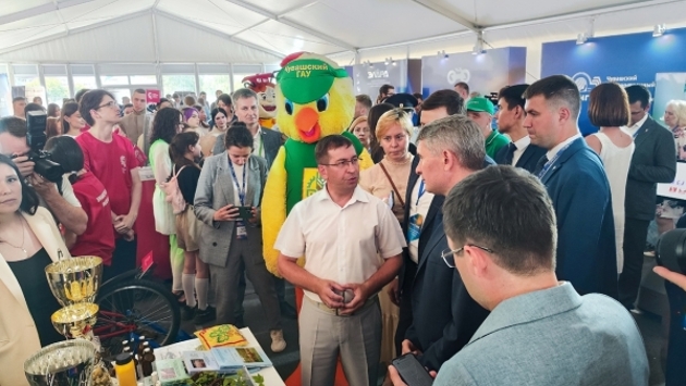 «Выставка – это традиционная площадка, где мы и демонстрируем достижения, и подводим итоги, а самое главное – ведем большое количество переговоров и намечаем планы дальнейшего развития. Этот год – не исключение. Мы нацелены зафиксировать планы и привлечь внимание партнеров, которые могли бы заинтересоваться нашими планами и поучаствовать в их реализации», – отметил на мероприятии глава Чувашии Олег Николаев. Выставка расположилась в отдельном шатре и вокруг него у стен Ледового дворца. На уличной площадке – крупные экспонаты. Среди них можно наблюдать продукцию мебельного производства, тракторы – обычные и мини-версии, мини-погрузчики, коммерческие автомобили и новенькие китайские кроссоверы. В шатре с порога встречает гостей «вкусный» блок участников выставки – это производители молочной и хлебобулочной продукции. Вслед за ними – экспозиция местных вузов, где они демонстрируют научные достижения. К примеру, студенты-стоматологи из Чувашского государственного университета им. И. Н. Ульянова делятся проектом конфет против кариеса, их товарищи с химико-фармацевтического факультета – образцами жидкой резины в виде брелоков. У стола Чебоксарского Кооперативного института гости задерживаются для знакомства с роботом. С ним можно сыграть в игру или послушать предсказание судьбы по фото. Студенты Чебоксарского института Московского политехнического университета демонстрируют две разработки – летательный аппарат и встраиваемый в дверь контроллер для умного дома. Его применение ориентировано на больничные палаты. Напротив них расположились представители Чувашского государственного аграрного университета. Их гордость – запатентованные средства для продуктивного и репродуктивного потенциала животных, а также образцы хмеля (пивоварение очень ценят в Чувашии). «Прежде всего, цепляет новизна в отношении людей и вовлеченности. Ребята из высших учебных заведений имеют великолепные идеи. Они проработаны, перспективны», – подчеркнул глава республики. Также экспонатами на выставке стали разработки от промпредприятий республики. В их числе, к примеру, двери и пульт управления для машинистов. Фото: ФедералПресс / Ксения Кобалия