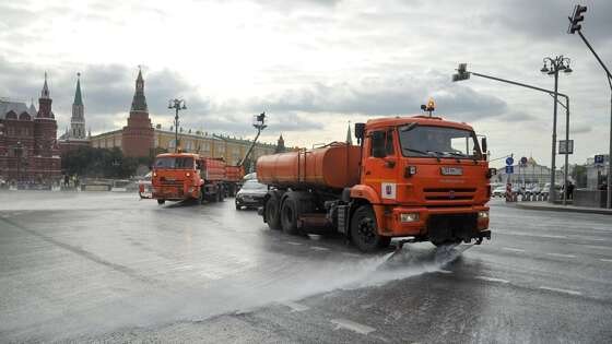 Дороги поливают в жару, чтобы их охладить и предотвратить деформацию.