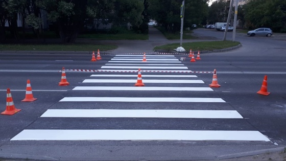 «По пешеходным переходам работы выполнены на 80 %. Из 14 866 кв. м нанесено 11 881 кв. м. Подрядчик обещает закончить работы на следующей неделе. Качество нанесённой разметки будем обязательно проверять», — сообщили в Службе городского хозяйства.