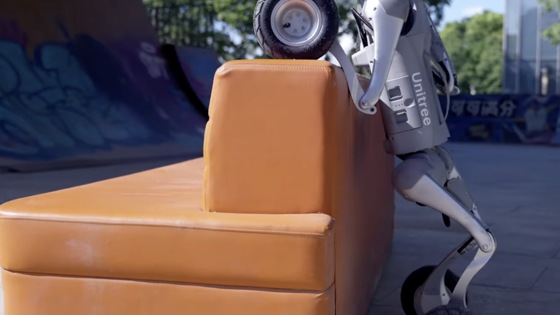 Благодаря этому робособака Unitree Go2 может с лёгкостью перелазить через ограду, взбираться на препятствия высотой в 70 см, подниматься и спускаться по лестнице, спрыгивать с уступов. К тому же Go2 способен вставать на передние колёса, ездить «вверх ногами» и балансировать в таком положении.