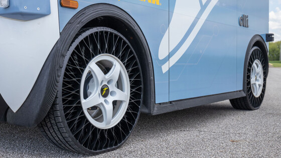 В Michelin работают упрямые ребята: в прошлом году они в испытательных целях всё-таки обули сразу 50 автомобилей службы доставки DHL Express в безвоздушные шины Uptis, которые стали развитием Tweel. Принцип у них остался прежним: спицы заменяют пластины из смеси композитного каучука и полимерного стекловолкна. Эти колёса должны были начать производить уже в этом году, но что-то хороших новостей пока нет. Хотя и плохих тоже нет, так что ждём ещё четыре месяца: вдруг успеют?