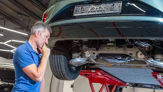 Причем конфигурация передней подвески напоминает таковую у автомобилей Tesla – так что со временем изнашиваться могут не только шаровые опоры, но и сочленения стоек с передними рычагами. А вот пневмобаллоны, особенно сзади, очень напоминают аналогичные упругие элементы на автомобилях группы Volkswagen. Они заботливо закрыты гофрированными чехлами, что снижает их абразивный износ и позволяет спрогнозировать ресурс более 100 тысяч км. Упруго подвешенный в заднем свесе пневмокомпрессор подвески своим исполнением тоже не дает повода усомниться в долгожительстве. Блок клапанов напоминает таковой на автомобилях Volkswagen, а конструкция из электромотора и насоса разборна и вполне ремонтопригодна.