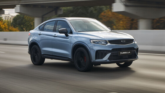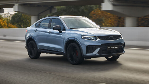 На второй строчке нашего рейтинга – популярный купе-кроссовер Geely Tugella. Автомобиль оснащается двухлитровым турбомотором JLH-4G20TD, но в двух вариантах форсировки, на 200 и 238 л.с., а вот прописанная в сертификате версия с двигателем мощностью 286 л.с. у нас так и не появилась. В паре с мотором работает безальтернативная 8-ступенчатая гидромеханика Aisin TG-81SC, а полный привод обеспечивает трансмиссионная муфта BorgWarner – аналог муфты Haldex пятого поколения. А на вторую позицию нашего рейтинга модель выводит версия с мотором в 238 лошадок: ей на выполнение этого упражнения требуется 6,9 секунды. При этом обе версии способны разгоняться до 210 км/ч.