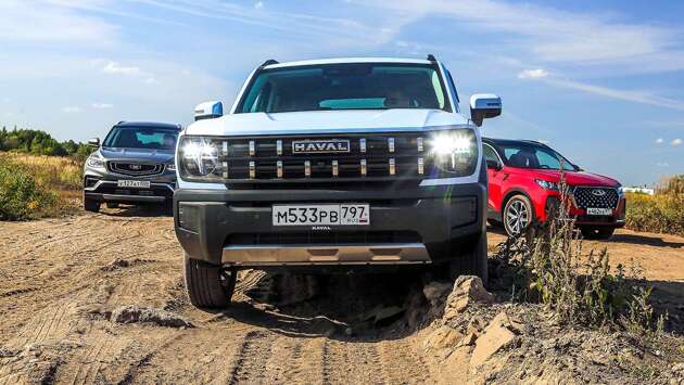 Эксперты «За рулем» сравнили новый Haval H3 с популярными Chery Tiggo 7 Pro Max и Belgee X70.Если подходить формально, то вся троица состоит из новых машин. Но все они хорошо известны. Бестселлер последних лет Chery Tiggo 7 Pro Max минувшим летом в очередной раз модернизировали – в таком виде «семерка» у нас еще не выступала. Белорусско-китайский Belgee X70 тоже в наших сравнительных тестах не участвовал. За него это делал предшественник Geely Atlas Pro (по сути, та же машина, отличаются они только нюансами). В большей степени право назваться новой моделью имеет Haval H3, продажи которого стартовали в конце весны. Однако дебютант он только для нас – в Китае продается уже два года. Belgee X70 В основе лежит Geely Atlas, дебютировавший в 2016 году. В 2021‑м начались продажи его модернизированной версии Atlas Pro. В нынешнем году сменил имя на Belgee X70. Собирают в Беларуси. ДВИГАТЕЛИ: бензиновые: 1.5 турбо (150 л. с.) от 2 635 990 ₽ 1.5 турбо (177 л. с.) от 2 929 990 ₽ Haval H3 У себя на родине известен с 2022 года под именем Haval Kugou. В России появился этой весной. Делают в России. ДВИГАТЕЛИ: бензиновые: 1.5 турбо (143 л. с.) от 2 599 000 ₽ 1.5 турбо (177 л. с.) от 3 099 000 ₽ Chery Tiggo 7 Pro Max Второе поколение «семерки» показали в 2019 году, а год спустя ее привезли в Россию. Минувшим летом появилась модернизированная версия. Производят в Китае. ДВИГАТЕЛИ: бензиновые: 1.6 турбо (150 л.с.) от 2 770 000 ₽ Проверили бездорожьем – Смотри, как будто маленький Hummer! Машина невелика, а запаску на заднюю дверь пристроили. Точно говорю – вездеход! Мальчишки во дворе точно подметили, что Н3 похож на представителя некогда славного семейства. Хаммеры такими и были: круглые фары, вертикальные прорези на радиаторной решетке, маленькие стекла-бойницы… Belgee X70 А вот с запаской мальчишки ошиблись – это вовсе не кофр, а выштамповка на пятой двери. Н3 всеми силами старается походить на взрослые внедорожники. Когда свернули на нечисто поле, Haval ничуть не смутился – пылил как ни в чем не бывало. Чуть буксанув, уверенно пересек глубокую колею с невысохшей грязью. В какой-то момент заднее колесо оторвалось от земли, но машину это не обездвижило – чуть подработав противобуксовкой, H3 невозмутимо попер дальше. Я даже не успел задействовать режим «Трава/Гравий», в котором противобуксовочная система становится менее строгой – преодолел в стандартном. Chery Tiggo 7 Pro Max Как водится у современных кроссоверов, возможности заблокировать межосевую муфту не предусмотрено. Вне асфальта H3 помогает неплохая «геометрия». Угол въезда – 24°, съезда – 31,5°. Клиренс не рекордный, но больше, чем у соперников – 185 мм (по нашим замерам). Опасения вызывали только установленные дилером подножки – но не отвалились. Бесполезная штуковина – себе бы такие ставить не стал. Haval H3 Трансмиссионная муфта не протестовала против долгой езды внатяг, а робот даже на крутых подъемах не размыкал сцепления. Конечно, это не Hummer, но среди компактных кроссоверов Н3 – один из лучших вездеходов. Соперники на бездорожье не столь состоятельны. Tiggo тот же маршрут дался сложнее. В колее межосевая муфта дольше подключала задние колеса. Да и за сохранность бамперов приходилось поволноваться: угол въезда – 22,5°, съезда – 28,0°. И клиренс – всего 165 мм. На прошлом тесте его робот не выдерживал нагрузки и размыкал сцепления, но тут сдюжил, хотя под конец маршрута чем-то паленым всё же потянуло. В общем, вне асфальта Tiggo не совсем уж беззубый, но приходитс