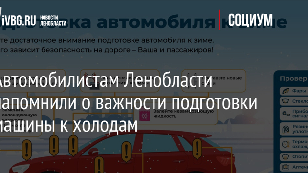 Автомобилистам Ленобласти напомнили о важности подготовки машины к холодам