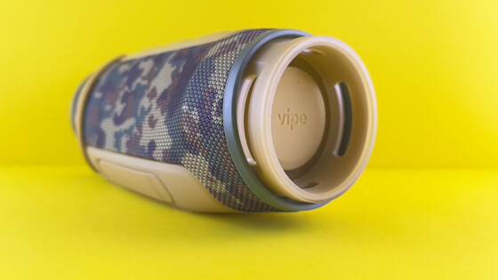 Одна из особенностей модели Vipe Spark — наличие опорных колец на торцах колонки, что позволяет поставить устройство вертикально. Тут же в углублениях находятся два пассивных излучателя. Они усиливают низкие частоты, используя внутреннее давление, исходящее от динамика.