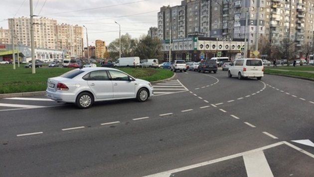 «Следует сделать в конструктиве, а не разметкой, но так, чтобы могли пользоваться не только местные, — говорит Якимов. — Поэтому на въездах следует установить знаки 5.15, которые показывают, с какой полосы куда попадёшь. На самих кругах нужны делиниаторы. Разрывы можно сделать только на въезде для перестроений».