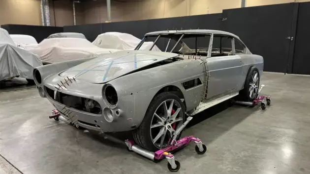 В это сложно поверить, но кузов оригинального Ferrari 1963 года действительно разрезали посередине, чтобы он соответствовал более широкому шасси современного California. У продавца уже есть вся необходимая проводка и была проведена пробная установка кузова на шасси.