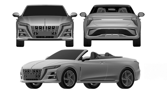 В документах патентного ведомства КНР обнаружили монохромные изображения ранее невиданной модификации. Hongqi защитила наработки по проекту кабриолета на базе H6. Из лифтбека хотят сделать четырёхместный автомобиль с двумя дверями, мягким складным верхом и спортивными акцентами. Судя по патенту, ожидается максимальная унификация по компонентам с исходной массовой моделью.