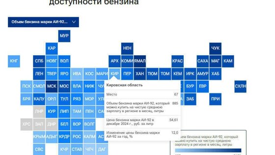 Кировская область - на 67-м месте рейтинга российских регионов по доступности бензина
