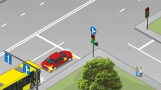 Правый ряд, в котором разрешено движение прямо и направо, – на перекрестках не редкость. И все чаще на таких перекрестках появляются камеры, следящие за нарушениями.Водитель легкового автомобиля остановился в ожидании включения зеленой стрелки в дополнительной секции светофора. Как поступить в этой ситуации водителю рейсового автобуса, которому надо ехать прямо? Отмечайте свой вариант в опросе ниже. А правильный ответ – на следующей странице. Правильный ответ: 2 Нарушение установленных ПДД РФ (пункты 19.1 и 19.10) правил пользования дальним светом фар и звуковым сигналом грозит водителю автобуса ответственностью по статье 12.20 КоАП РФ в виде предупреждения или наложения административного штрафа в размере 500 рублей. Аналогичная ответственность предусмотрена, если он решит перестроиться на соседнюю полосу, проигнорировав сплошную линию разметки (часть 1 статьи 12.16 КоАП РФ). Остается только ждать. Еще один тест на знание ПДД тут.