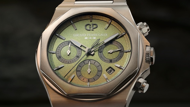 Часы Laureato Chronograph Aston Martin Edition — это шестая по счету коллаборация Girard-Perregaux и Aston Martin с начала их партнёрства в 2021 года. Как и прошлогодние Laureato Green Ceramic Aston Martin Edition, новинка имеет зеленый циферблат, для которого в этот раз использовали перламутровую автомобильную краску. Эффект градиента получен путем нанесения 15 слоев, а весь процесс из-за отличий в стандартах пришлось разбить на 14 этапов с двумя циклами тепловой обработки.