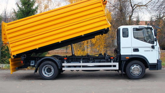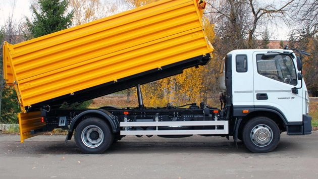 Пресс-служба группой компаний «Современные транспортные технологии» поделилась фотографиями бескапотника на шасси «Валдай-12». Новый самосвал ГАЗ грузоподъёмностью 6,6 тонны может вмещать 15,3 кубометра сыпучих грузов (с надставными бортами), разгружаться набок и назад при помощи гидравлического устройства с четырёхзвенным гидроцилиндром производства САЗ.