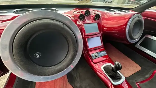 Судя по фотографиям, динамик интегрирован в специально изготовленное рулевое колесо. Естественно, ни о какой практичности речи не идёт: учитывая, что этот автомобиль создан в основном для выставок, а не для ежедневных поездок, такие решения оправданы.