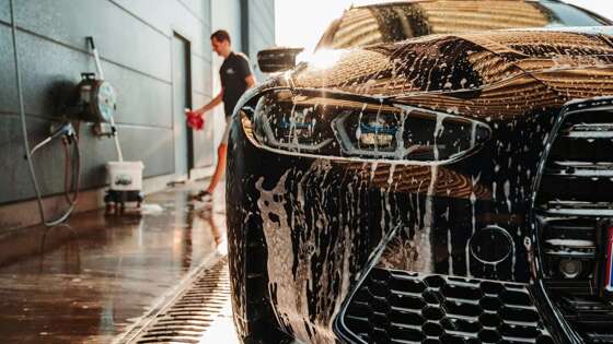 Процесс мойки должен начинаться с того, чтобы смыть грязь водой, затем нанести пену для удаления дорожной грязи и оставить на несколько минут. После этого снова промойте автомобиль водой.