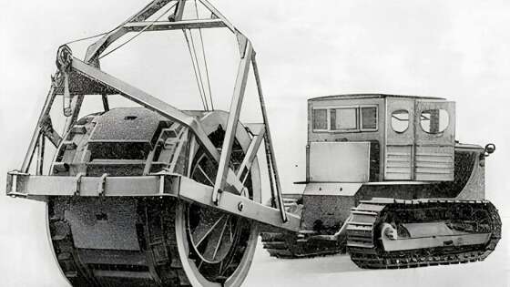 «За рулем» описал особенности грунтоуплотняющей машины ударного действия Д‑390При строительстве водохранилищ, каналов или аэродромов необходимо утрамбовывать грунт. Любопытным решением проблемы стала грунтоуплотняющая машина ударного действия Д‑390, работавшая в послевоенное время во многих республиках СССР. В ее основе – стальное колесо диаметром свыше двух метров, в пазах которого скользят три падающих груза. Грузы поднимались в верхнюю точку катящегося колеса, после чего падали на грунт, уплотняя его. Механизм мог работать при ходе назад и вперед. Перемещал машину гусеничный трактор. Необычные факты из истории техники Михаил Колодочкин коллекционирует много лет. Вот, например, вы знали, какие уникальные решения применялись в конструкции автобуса ТА-6? О необычной конструкции советского вездехода ЗИЛ‑3906 Аэролл рассказано здесь.