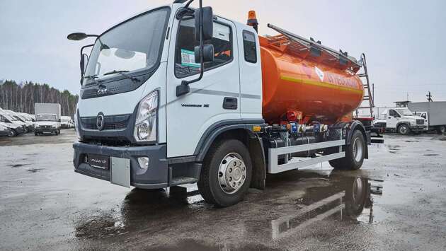 ГК «СТТ» и «РусТрак» показали топливозаправщик на шасси грузовика Валдай 12Газовское семейство Валдай 12 продолжает прирастать спецтехникой. Вслед за крано-манипуляторной установкой (КМУ) и комбинированной дорожной машиной (КДМ) компания «Современные транспортные технологии» показала топливозаправщик, созданный совместно с производителем спецтехники компанией «РусТрак». Машина предназначена для транспортировки светлых нефтепродуктов и заправки спецтехники в точке эксплуатации. Предполагается, что такой автомобиль будет востребован, прежде всего, в строительной и сельскохозяйственной сферах. В отличие от вышеупомянутых КМУ и КДМ, имеющих, соответственно, длинную и короткую варианты колесной базы, топливозаправщик создан на среднеразмерном шасси Валдай 12 с расстоянием между осями 3860 мм – как самосвал, бывший первым в этом уже внушительном ряду «валдайской» спецтехники. При общей длине автомобиля 6800 мм максимальный радиус разворота топливовоза составляет всего 6,5 м – лучший показатель в классе. Цистерна объемом 8000 литров разделена на два отсека и имеет эллипсоидное сечение – это повышает эффективность использования и снижает центр тяжести машины. Материал – низколегированная сталь 09Г2С, не боящаяся ударов, износа, высокого давления и перепадов температур. Заливается цистерна сверху, а освобождается – самотеком или с помощью собственного насоса на 600 л/мин, работающего через коробку отбора мощности. Напорно-всасывающие рукава – из композитов, гибкие при любой температуре и на быстросъемных соединениях. Узел выдачи – в корме, что дает производить отпуск топлива на любую сторону от автомобиля. Все 10 метров раздаточного рукава при транспортировке укладываются в автоматический барабан. Все топливные коммуникации – алюминиевые, то есть коррозии в трубопроводе не будет... Заправить трактор, комбайн, грузовик, стоящие хоть в открытом поле – теперь не проблема!
