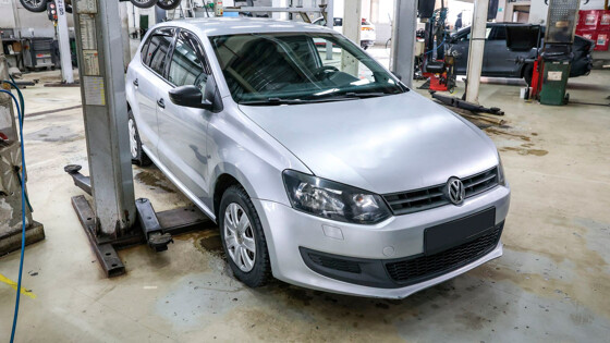 Капот покрыт сколами, на переднем бампере заметны многочисленные царапины, а задний вдобавок треснул снизу. И едва ли автомобиль знает, что такое полировка – ЛКП местами стало матовым.Polo пятого поколения построен на фольксвагеновской платформе PQ25, и спереди у него стойки МакФерсона, сзади – торсионная балка. В общем, все детали знакомы по другим моделям Volkswagen, что внушает оптимизм с точки зрения ремонтопригодности. А что у нас с регламентом техобслуживания?