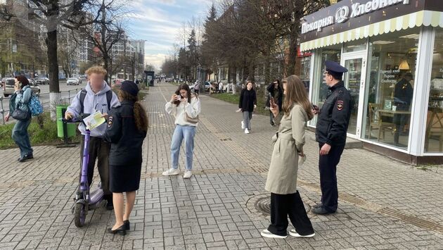 Ижевск. Удмуртия. Сотрудники ГАИ Удмуртии провели рейд по соблюдению водителями электросамокатов Правил дорожного движения на пешеходных переходах Ижевска. Местом проверки был выбран перекрёсток улиц Пушкинской и Кирова в четверг, 24 апреля.