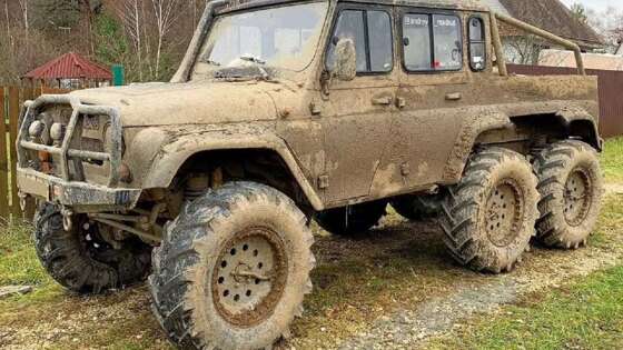 Уникальный УАЗ Hunter 6x6 выставлен на продажу за 9,9 млн рублей На одном из онлайн-классифайдов появилось редкое предложение для ценителей экстремального бездорожья – единственный в мире УАЗ Hunter 6x6. За доработанный внедорожник 2017 года с пробегом всего 30 000 км просят 9 999 999 рублей. Автомобиль находится в Москве и продается, чтобы завершить новый проект. Очевидно, что умельцам просто нужны деньги. Машина построена на базе серийного УАЗ Hunter, но модифицирована до формата трехосного вездехода. Внедорожник оснащён мостами от Volvo C306 Laplander с дисковыми тормозами, пневмоблокировками и индивидуальной подкачкой колёс. Установлены тракторные колеса диаметром 42 дюйма и усиленные диски с двухсторонним бедлоком. В движение «монстра» приводит легендарный двигатель 2UZ-FE от Toyota Land Cruiser 100 в паре с 5-ступенчатым автоматом A750F и раздаточной коробкой с понижающим редуктором Trail Gear 3.15. Электросистема тоже не подкачала: герметичный генератор VW Touareg на 210А, помпа Davies Craig и четыре компрессора Berkут с ресиверами. Дополняют картину лебедки Runva, амортизаторы и рулевые элементы от Nissan Patrol, бамперы РИФ, вентиляторы Spal и алюминиевый топливный бак на 90 литров. По утверждению продавца, построить аналог сейчас обойдется минимум вдвое больше, чем заявленная цена. Источник: Avito.Авто