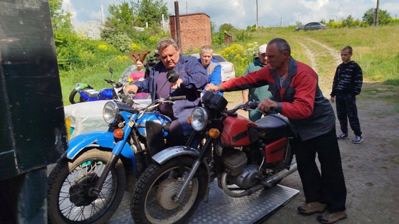 На этот раз у сельчан среди прочего были и особые подарки - пять мотоциклов, в основном "Уралы". Владельцы приобретали их еще в советские годы. Железные кони, никогда не подводившие в поездках по лесам и полям, и сегодня на ходу и находят применение на линии соприкосновения.