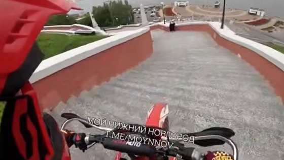 Молодой человек проехался на питбайке по ступеням Чкаловской лестницы. Кадры поездки опубликовал Telegram-канал «Мой Нижний Новгород».