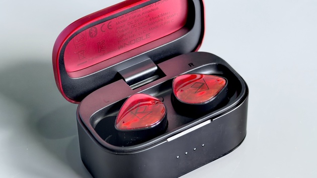 Noble FoKus Amadeus - это самая новая и самая доступная (если тут уместно такое определение) модель в линейке беспроводных Noble FoKus. Вообще, несмотря на свои аудиофильские корни, Noble Audio - это не только про звук и эргономику, а музыканты в наушниках этой компании отыгрывают многочасовые концерты, но и про дизайн. Среди наушников Noble встречаются модели с накладными панелями из акрила, причем с очень затейливыми рисунками (иногда сделанными вручную), с накладками из дорогих сортов дерева, зарядные кейсы из металла, дерева или покрытые искусственной замшей. В общем, дорого/богато (в хорошем смысле). Несмотря на то что Noble FoKus Amadeus - младшие в линейке "Фокусов", их дизайн тоже не подкачал. Яркие, как и музыка Вольфганга Амадея/Amadeus Моцарта, черно-красные, в солидном кейсе с металлической крышкой. На матовом кейсе отпечатков пальцев не остается, а вот на глянцевых наушниках - очень даже. Впрочем, их не особо заметно, отчасти благодаря небольшим размерам, отчасти конструкции, отчасти переливающейся огненно-красной расцветке наушника.