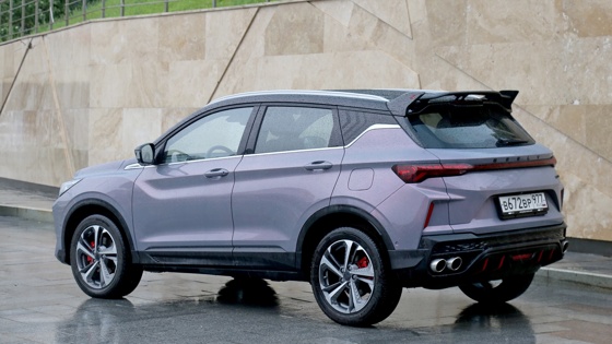 Однако в экстерьере и интерьере в целом уравновешены элементы, призванные зацепить представителей обоих полов. Дамам наверняка понравится уже сам форм-фактор, крепко сбитый SUV выглядит энергичным и стильным, хотя на мой взгляд, лаконичности и солидности в сравнении с дореформенным Coolray во внешности убавилось, а эпатирующих черт, таких как крупное антикрыло, настоящий, а не бутафорский квартет выпускных патрубков и красные тормозные суппорты (выделены старшей комплектации), прибавилось.
