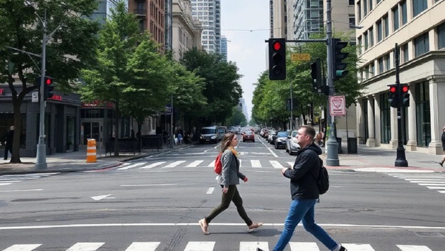 - Он ускоряет шаг, смотрит на вас, готовится перейти.