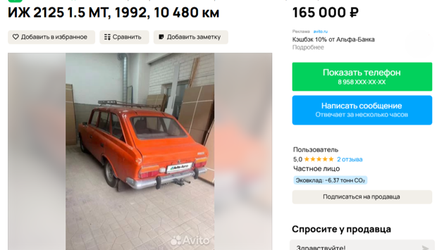 В ходе мониторинга сайтов с объявлениями "РГ" удалось обнаружить в продаже в Челябинской области практически новый ИЖ-2125 "Комби". И цена на машину - на удивление очень низкая.