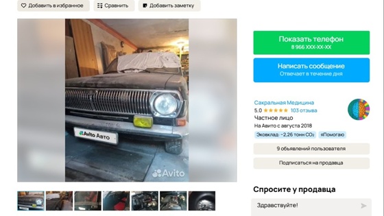 Автомобиль оснащен бензиновым двигателем объемом 2,4 литра (около 100 л.с.) и 5-ступенчатой механической коробкой передач. За черную "Волгу" продавец просит 1,3 млн рублей.