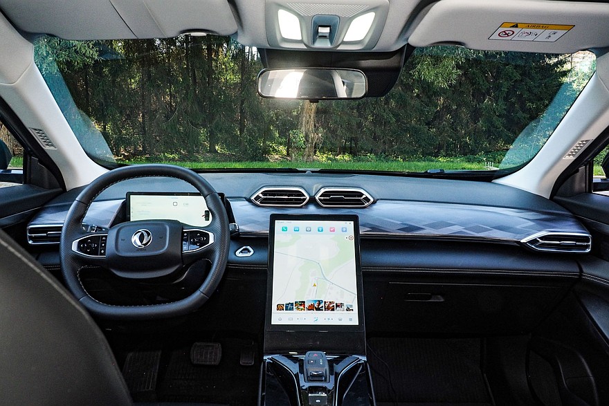 Но главная визитная карточка любой марки и модели – облицовка радиатора. И здесь самая примечательная деталь – светлые элементы с собственным именем Starlight Rhythm («Ритм звездного света»), примыкающие с боков к решетке, которая имеет форму перевернутой основанием вверх трапеции. С этими элементами перекликается декор задней стойки кузова. Кстати, интересный момент: маркетологи Dongfeng решили присвоить отдельным элементам внешнего дизайна имена собственные. Так, облицовку радиатора они назвали Star Track («Звездный путь»), спойлер – Speed Phantom («Призрак скорости»), фары – Galaxy Light («Свет галактики»), а фонари получили имя Interstellar («Межзвездные»). Такой вот сайнс фикшн, такая научная фантастика… Но как эта «блистательная техномагия» выглядит изнутри?