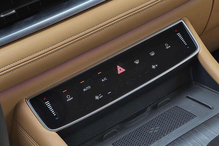 Блок управления климатической установкой вместе с кнопкой «аварийки» – сенсорные. Это неудобно, но лучше уж так, чем каждый раз лезть в мультимедийку, чтобы сделать чуть потеплее или, скажем, включить обдув ветрового стекла. Правда, на касания пульт реагирует с ленцой и порой не с первого раза, поэтому нажимать кнопки нужно увереннее, а для этого надо как следует прицелиться. На ходу это делать непросто.