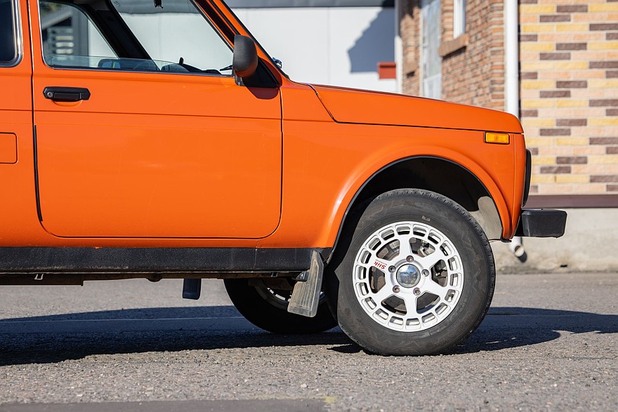 Диски колес с необычным дизайном – кованые 16-дюймовые Slik MS52. Шины 205/70 чуть шире, чем стандартные 185-е, но увереннее держат дорогу. Как многие считают, это оптимальный для Нивы размер.