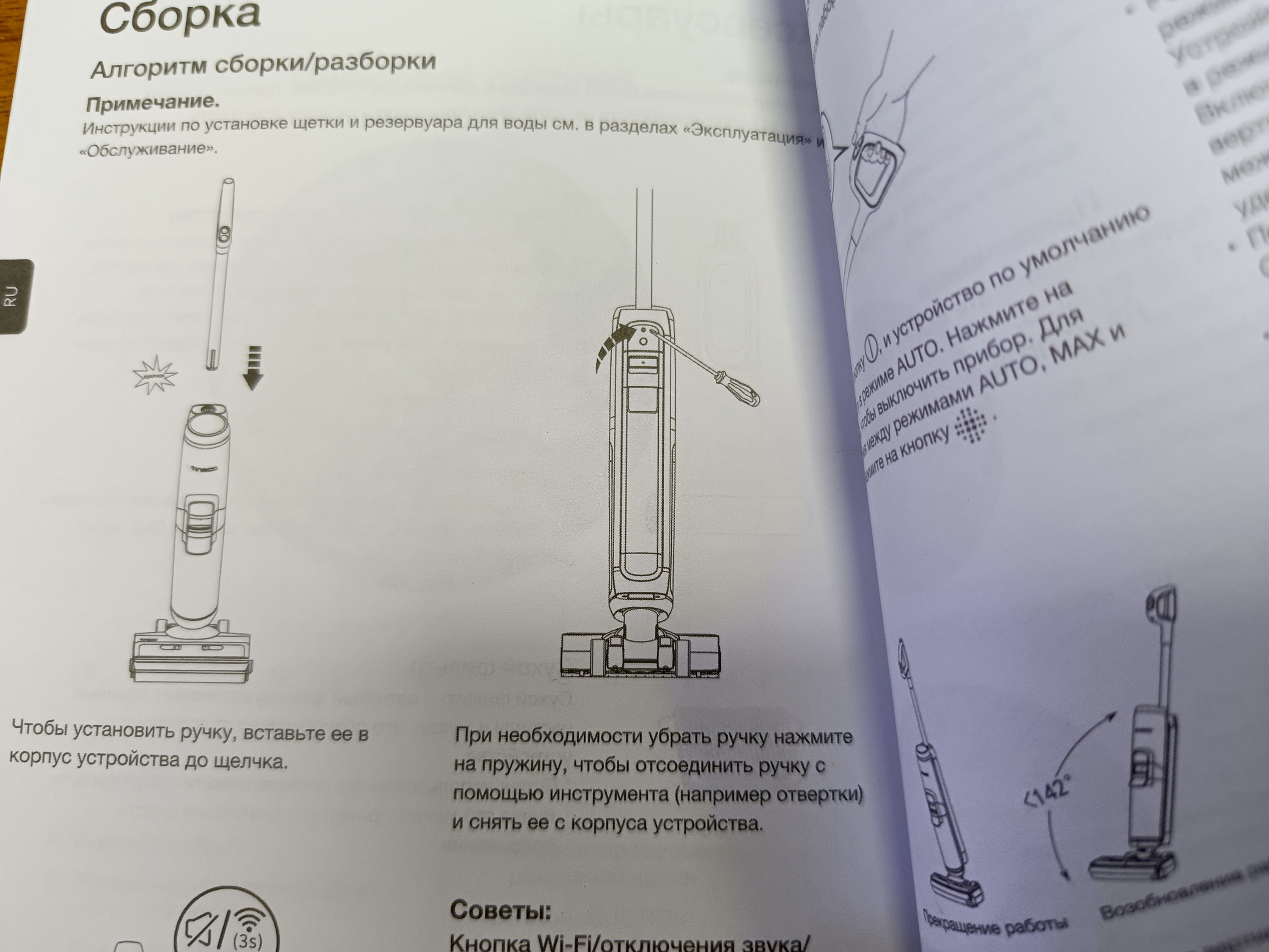 Сборка элементарная - ручка до щелчка вставляется в основной блок пылесоса. Все современно, суперлогично, естественно и понятно. Но, если вы захотите отсоединить ее, вам понадобится нажать на пружину "с помощью инструмента (например, отвертки)". Так в инструкции и написано.